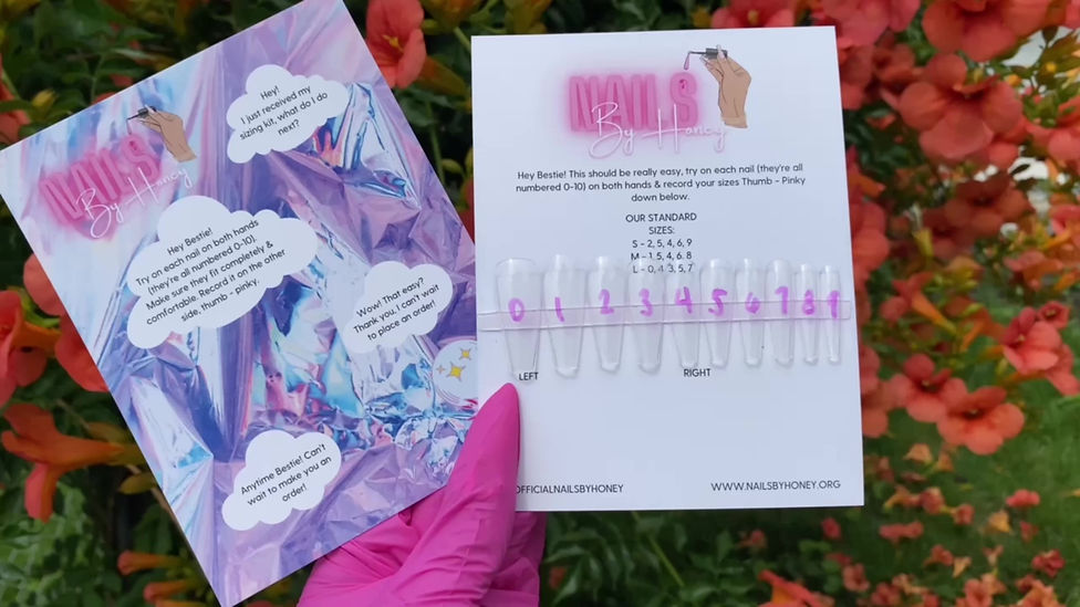 First time buyers automatically receive a FREE Sizing Kit following your first order with us! To find your perfect fit simply follow the instructions & send us a chat/dm with your nail sizes. We'll save them for you so you don't have too.